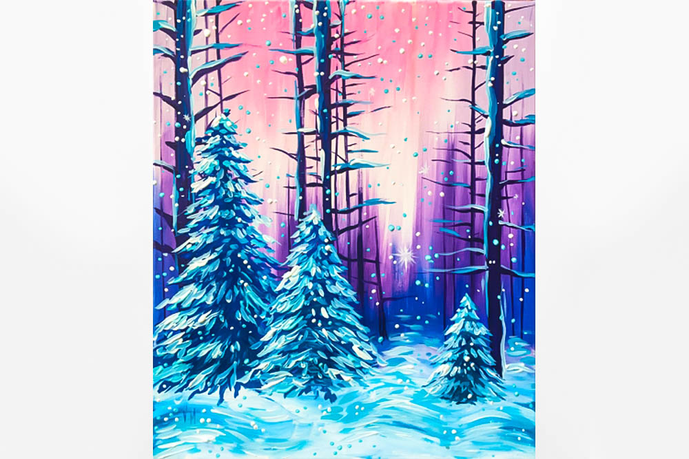 Virtual Paint Nite Frozen Forest Ii Ages 18 Class In Chicago Yaymaker Coursehorse
